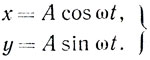 Точка с координатами x и y, определяемыми этими уравнениями, описывает окружность радиуса A. Действительно, x2+y2 = A2 cos2 ωt + A2 sin2 ωt = A2. А это и означает, что траектория движения - окружность.