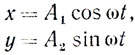x = A cos ωt, y = A sin 4ωt.