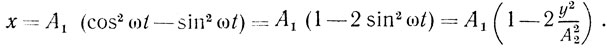 Чтобы найти течки с координатами x = A cos ωωt и y = A sin2ωt, вспомним, что в случае окружности единичного радиуса (r = 1) cos ωt численно равен проекции радиуса-вектора r (ωt) на ось X, a sin ωt - проекции на ось Y. Так как мы взяли окружность радиуса A, то координаты x и y каждой точки окружности - это проекции радиусов-векторов этих точек на оси X и Y.
