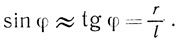 Как видно из рис. 120, тангенс угла дифракции φ для темного кольца подсчитывается по формуле tg φ = r/l, где r - радиус окружности эриометра, l - расстояние от эриометра до мотка проволоки. При малых углах дифракции, с которыми приходиться иметь дело при таких измерениях, справедливо соотношение